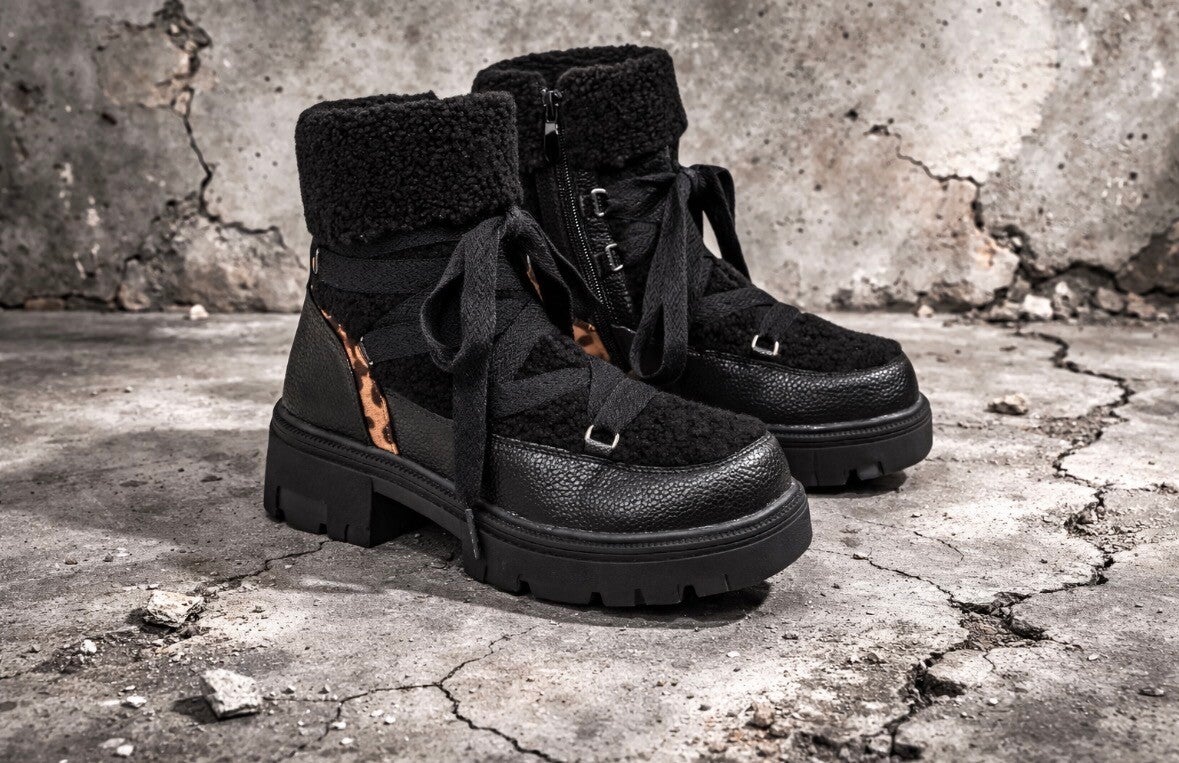 ‼️ LAATSTE MAATJES ‼️ Veterboots zwart met leopard, Maat 37 - 38