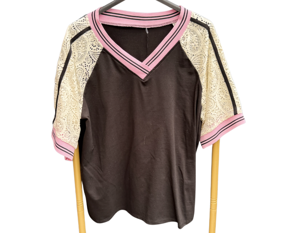 T-shirt met kanten mouwen, 4 kleuren verkrijgbaar