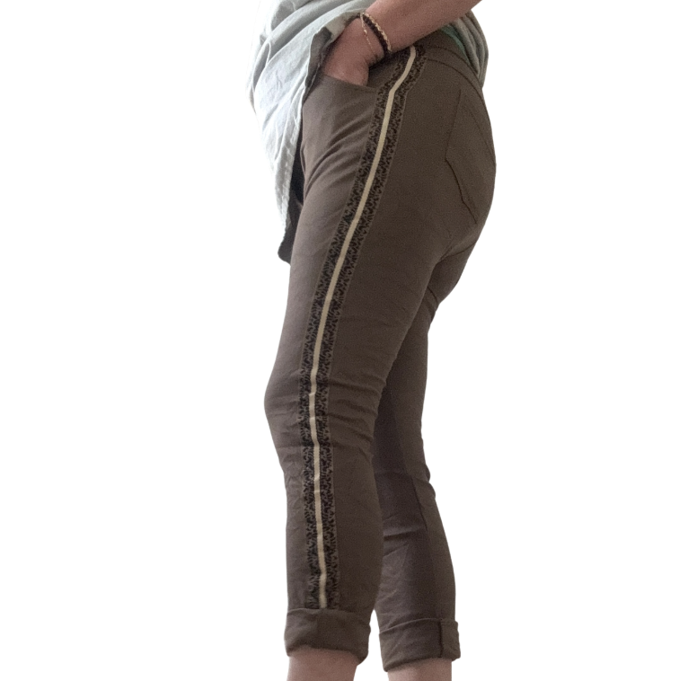 Met mooie leopard print en tekst, afgezet met leopard bies bij de mouwen.