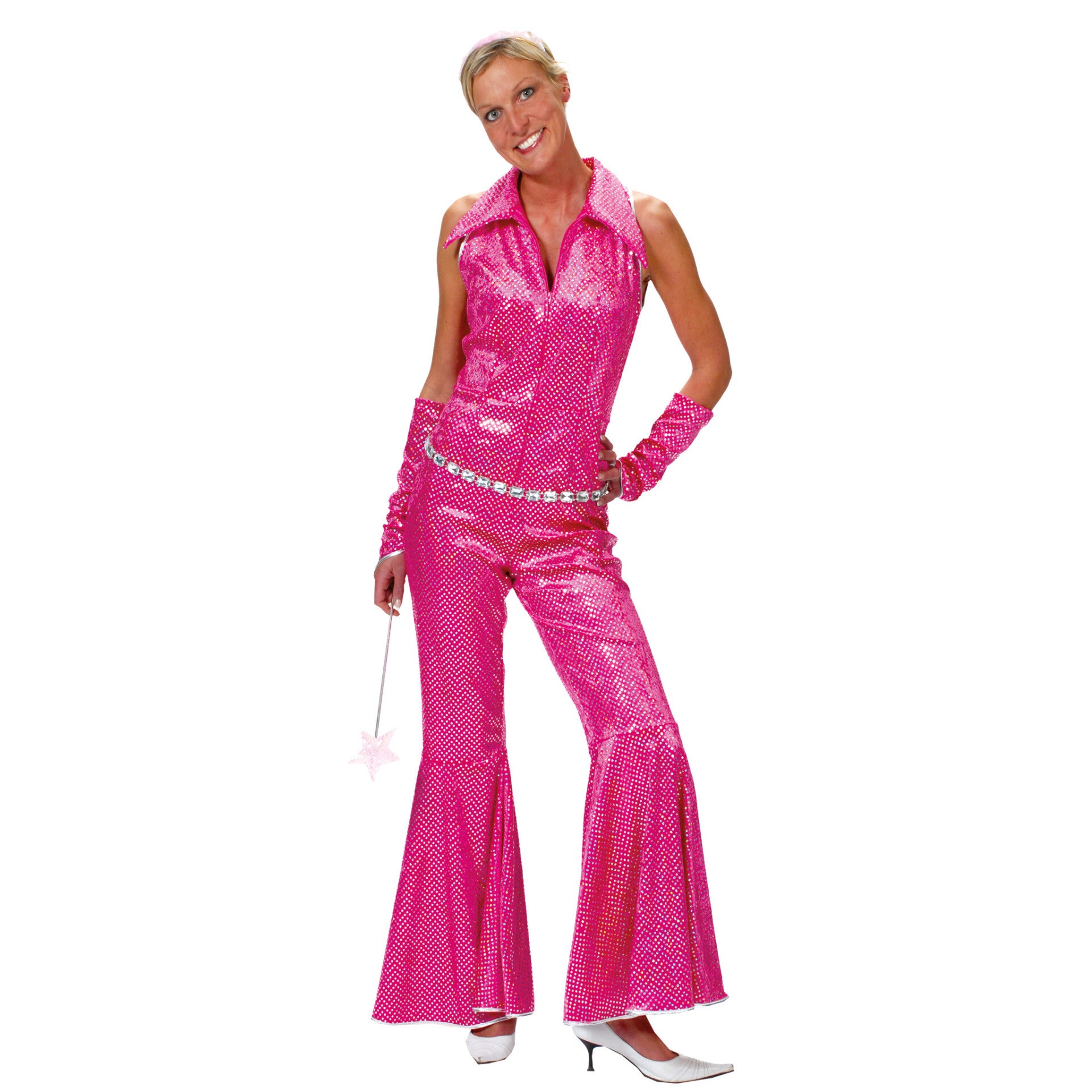 Stralend de dansvloer op in dit zwart glitter discopak! Perfect voor elke feestelijke gelegenheid waar je wilt schitteren.