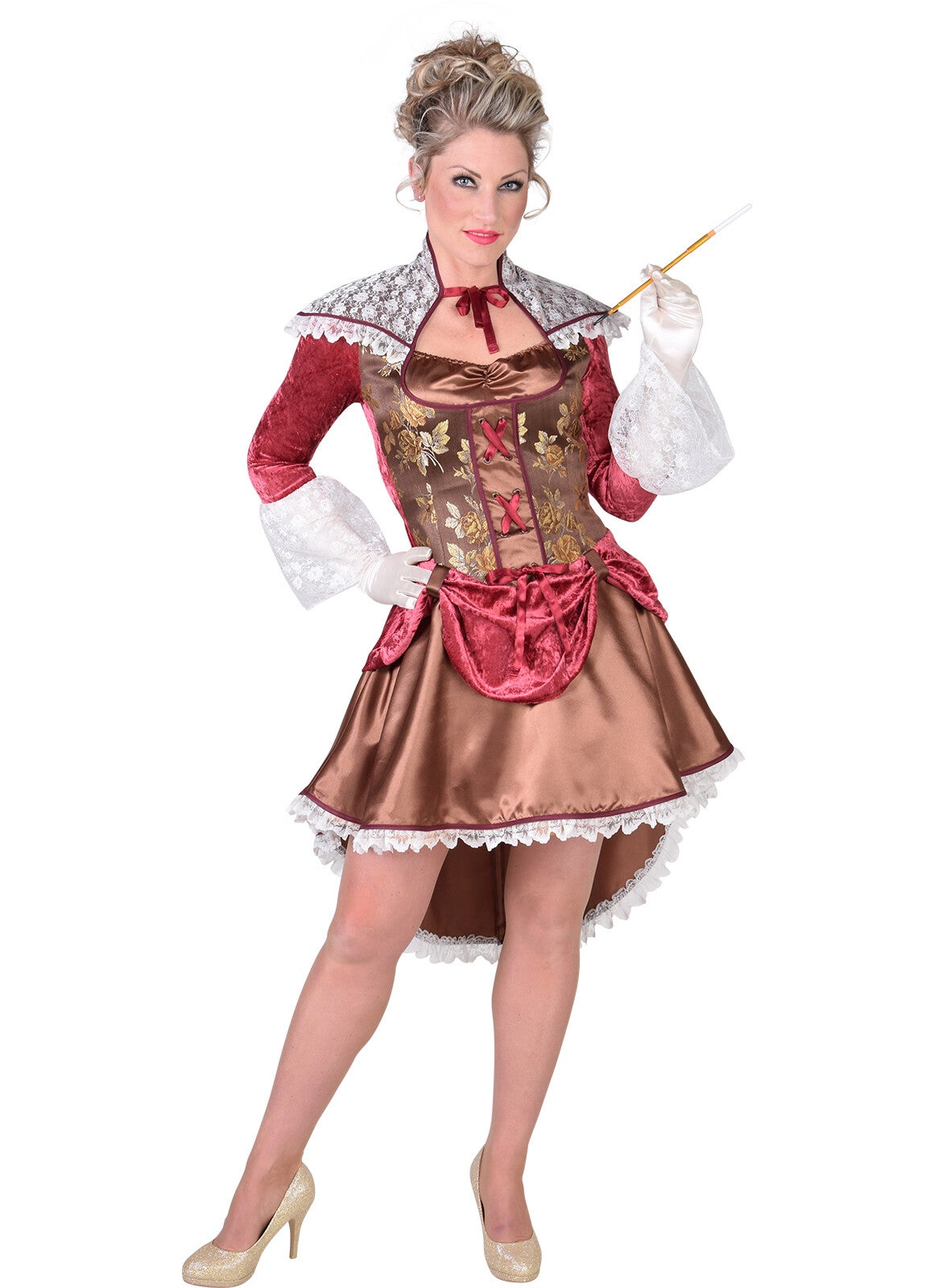 Deze prachtige jurk bestaat uit de chique burlesquejurk met kanten kraag in hoogwaardige stof, een burlesquekostuum voor volwassenen voor carnaval, cabaret, Moulin Rouge, western en verkleedpartijen.