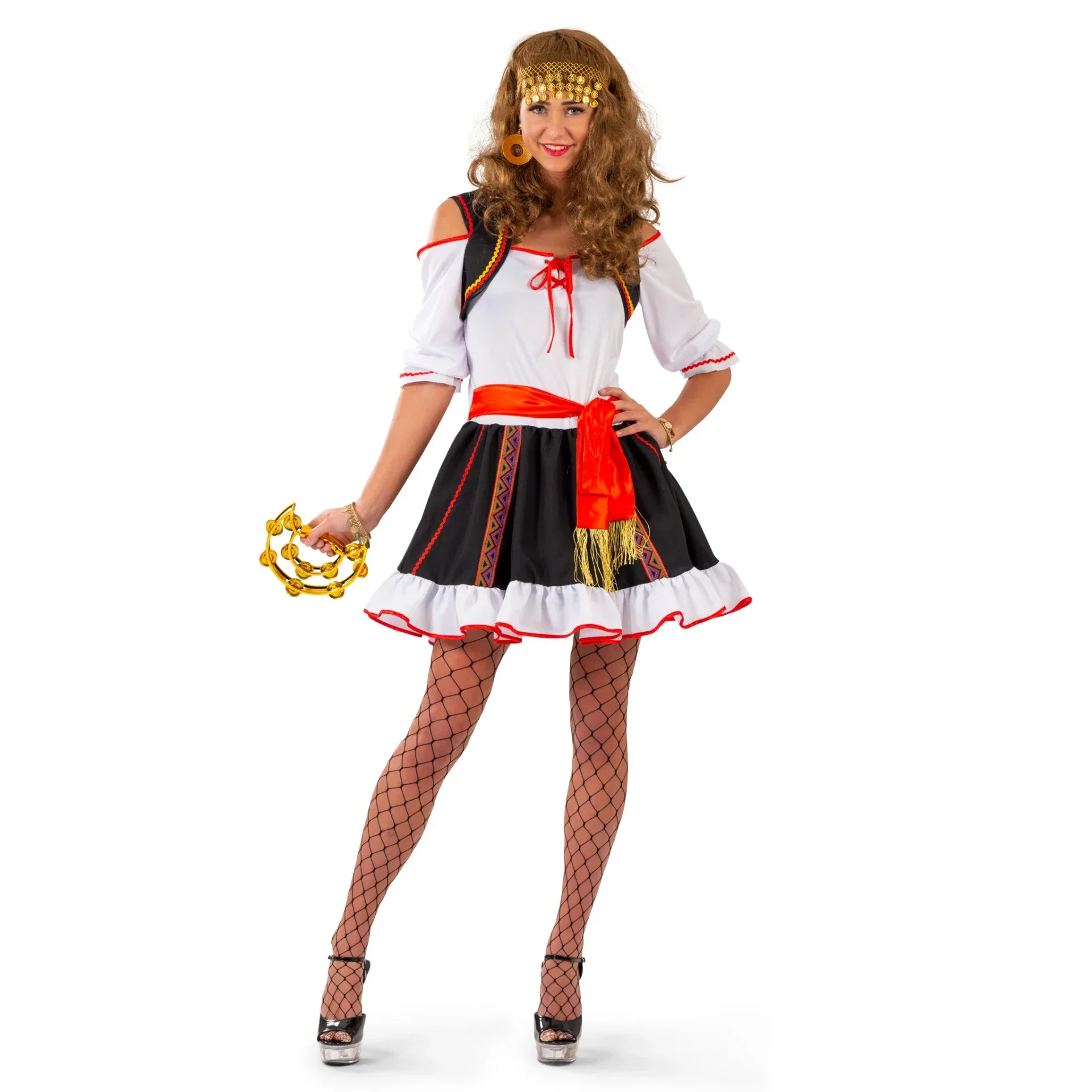 Voel je de koningin van het carnaval in het Zigeunerin jurkje Fiona! Dit kleurrijke jurkje met riem laat je stralen op elk feestje. Dans de nacht door!