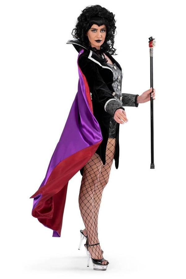 Betreed de duistere wereld van elegantie met het Gothic kostuum Gwendoline! Perfect voor Halloween of een mysterieuze avond. Durf jij het aan? Cape is dubbelzijdig een andere kleur.