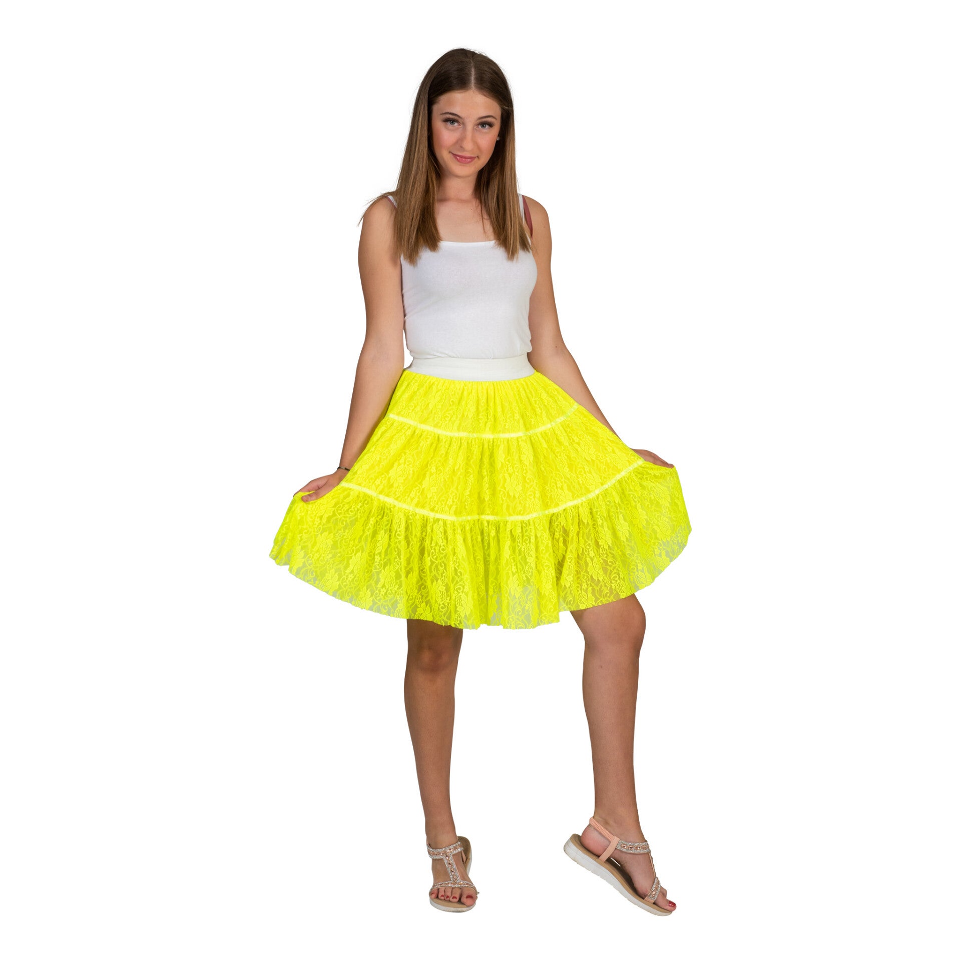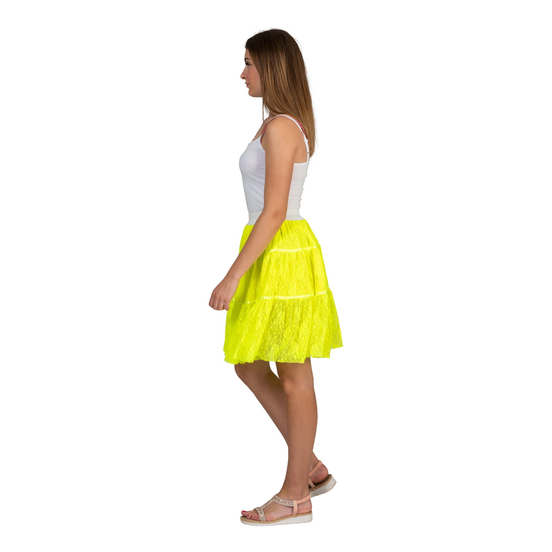 Maak je outfit compleet met de kanten petticoat in neon Geel of Roze!