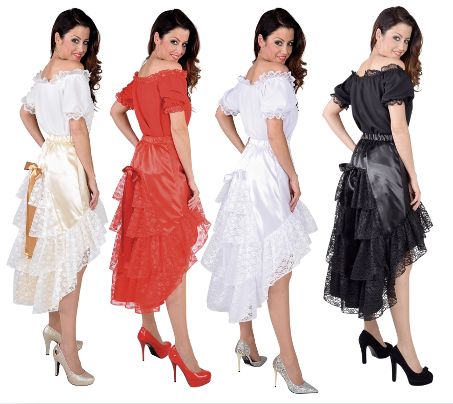 Luxe satijn rok met kant wit met volangen op achterpand.