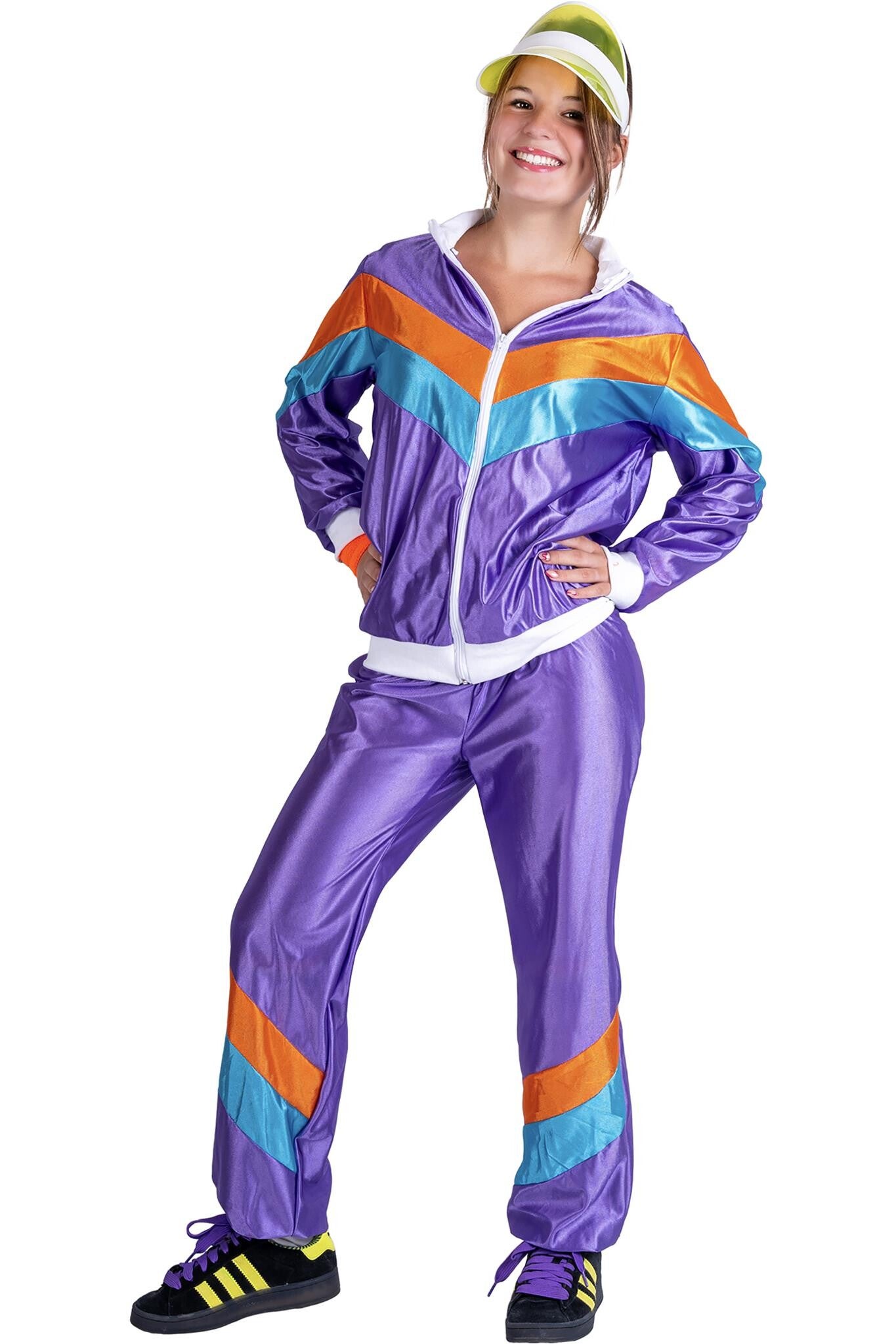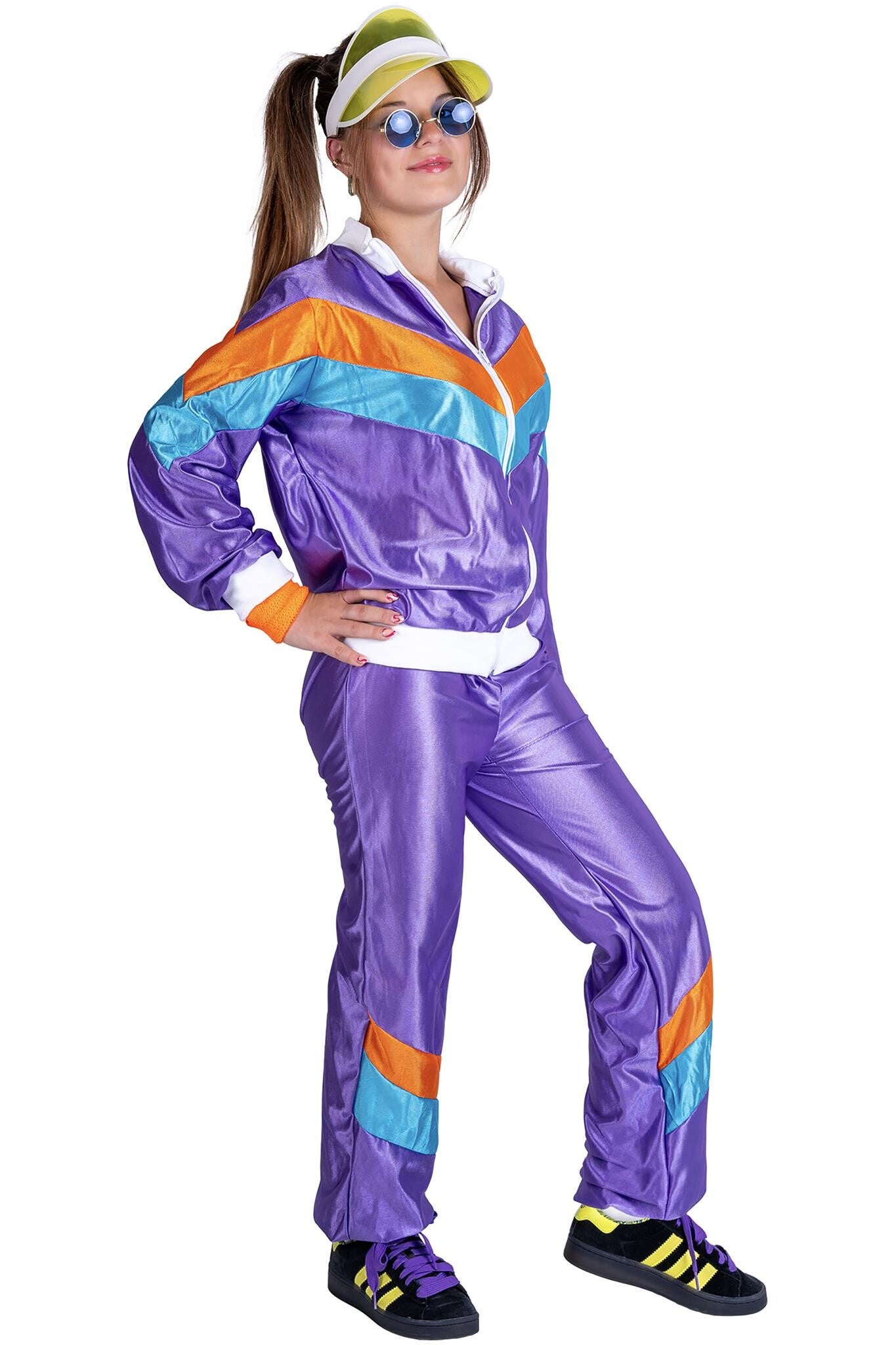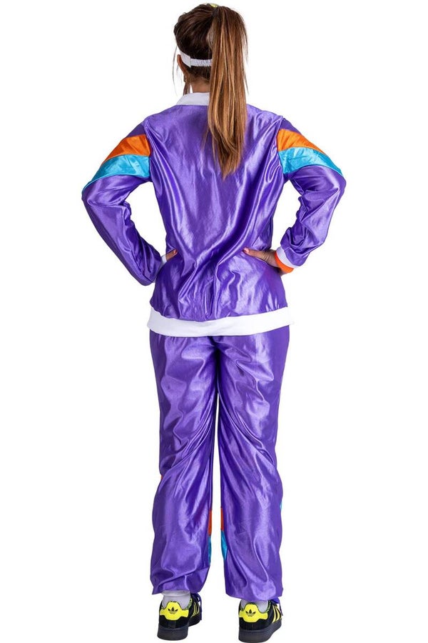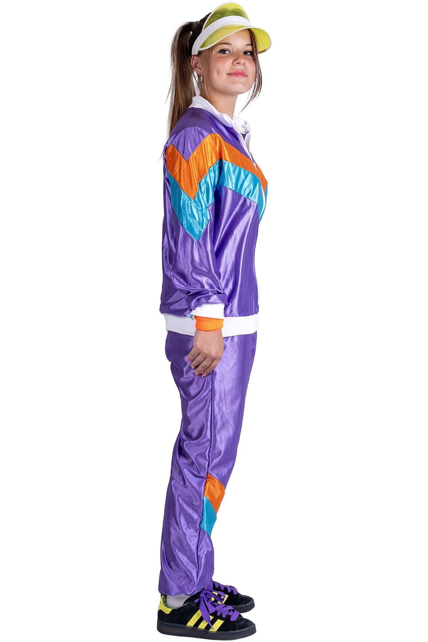 Stap in de spotlights met het paarse trainingspak! Perfect voor een knallend feest of een retro avondje uit. Voel je de ster van de show!