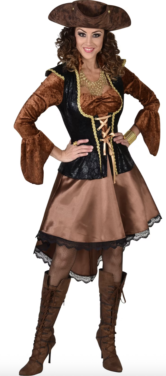 Steampunk of Pirate?De ene dag steampunk, de andere dag pirate, dat is een voordeel van deze jurk. Je kunt hem op twee manieren gebruiken, draag er de juiste accessoires bij dan zit je zo in een ander thema.