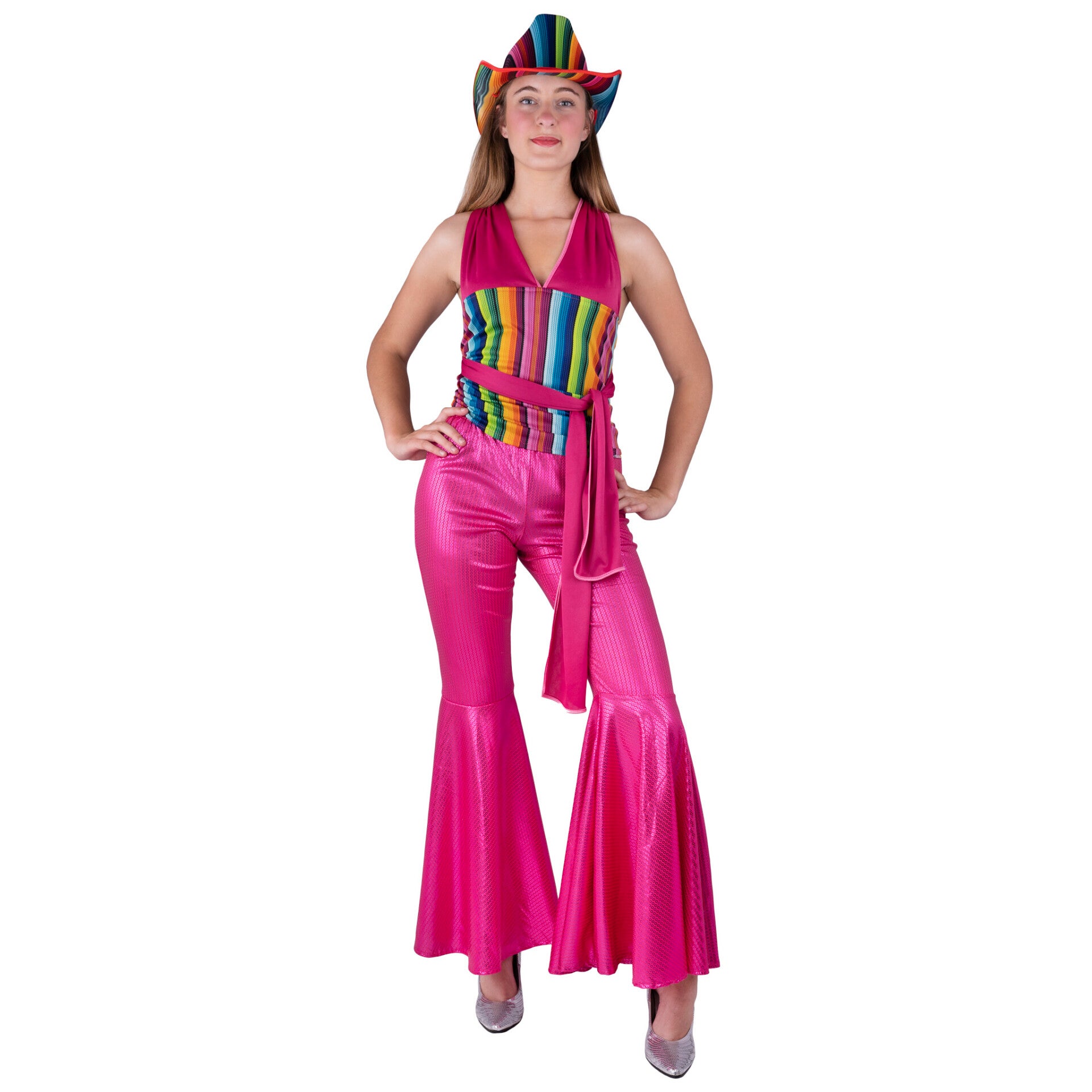 Stap in de spotlights met deze roze discobroek vol pailletten!