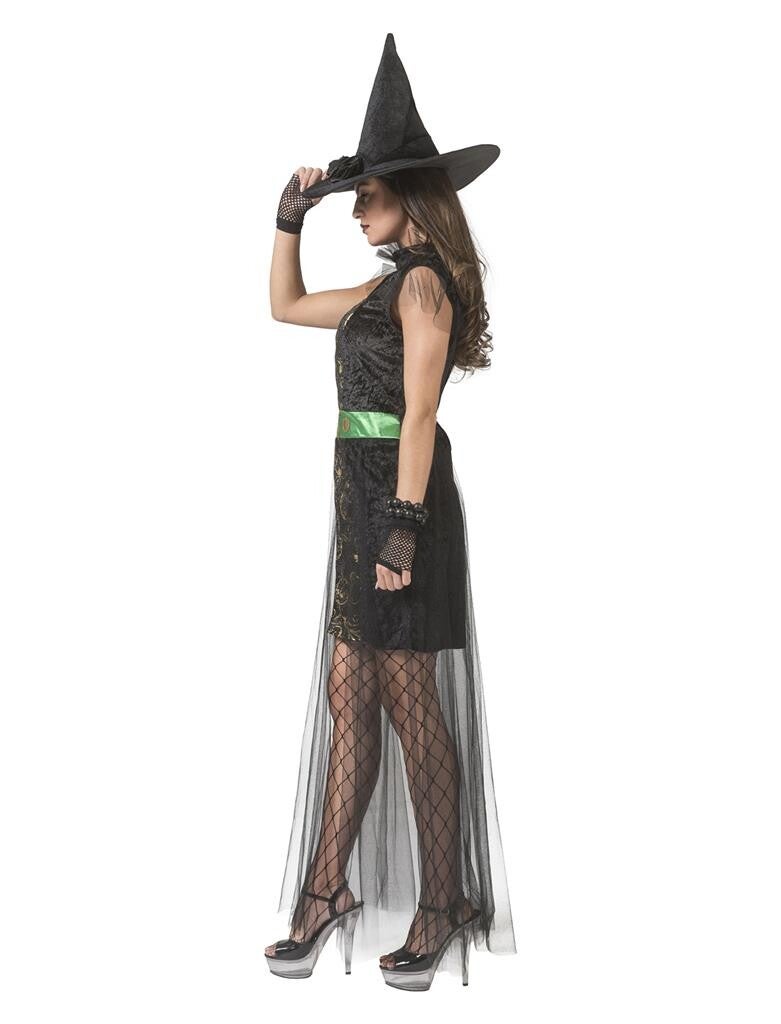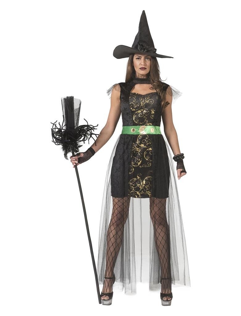 Transformeer je in een magische heks met de betoverende Heksenjurk Galaxy in zwart en goud.