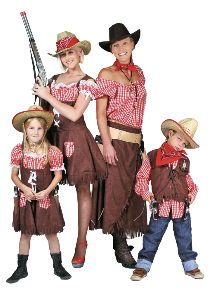 Daar sta je in je bruin met rode Cowboy & Cowgirl kleding voor garant.