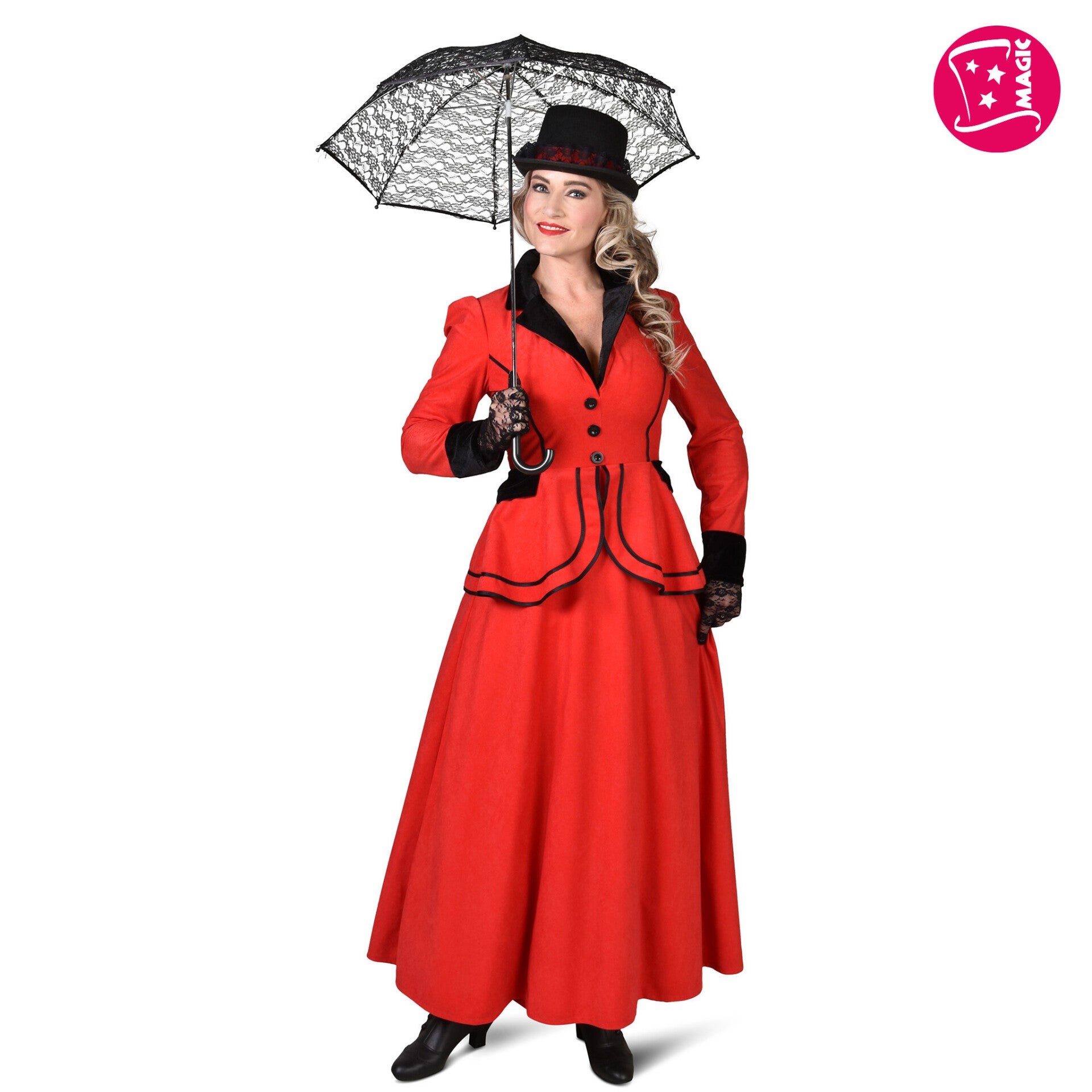 Stap in de tijdmachine en reis terug naar de elegante Victoriaanse tijd met dit prachtige Victoriaanse damespak in een levendige rode kleur.