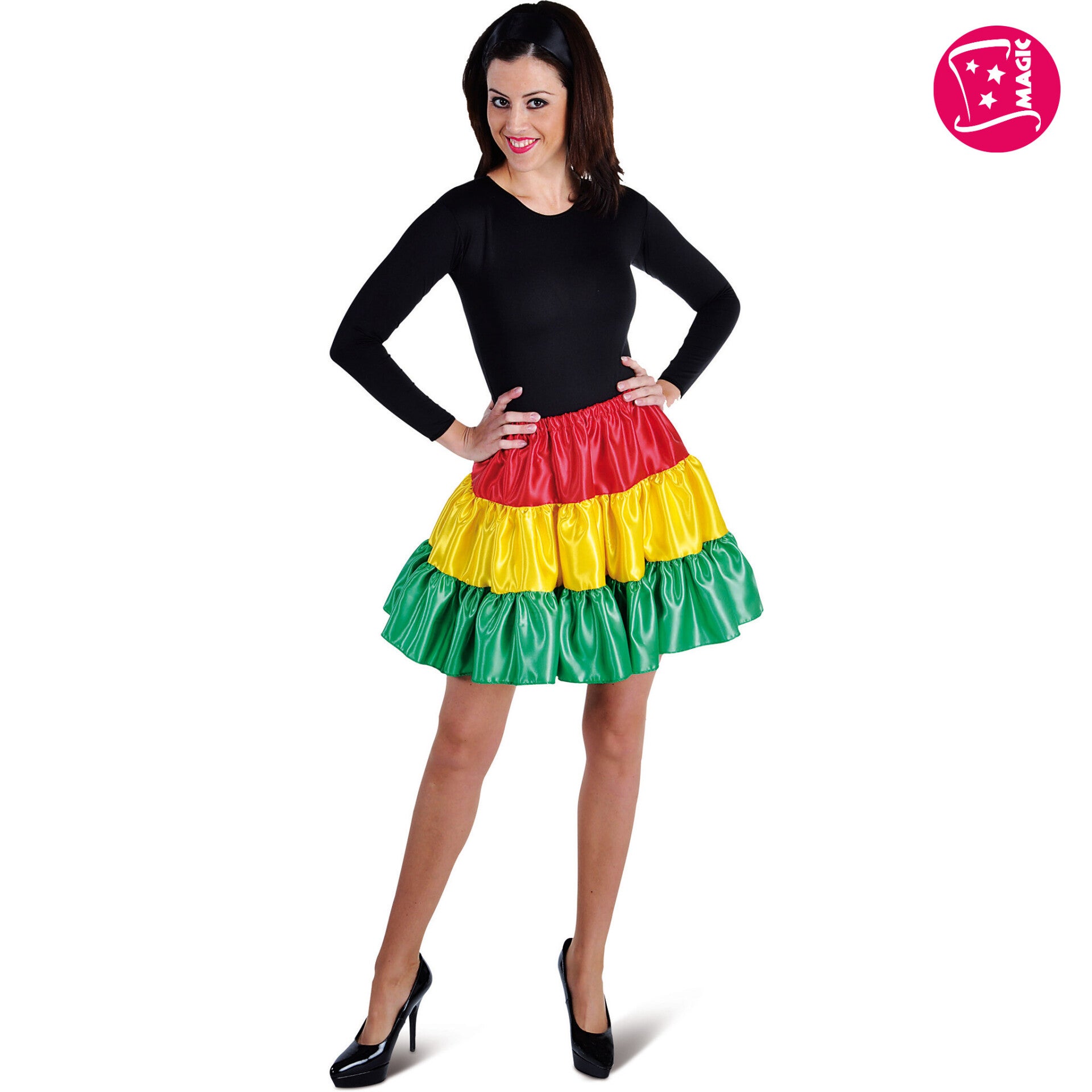 Stroken rok in de carnavalskleuren rood, geel en groen. Satijnen rok, strokenrok, om te combineren met een leuke top of leuk jasje. Mix en mach zelf je leukste outfit bij elkaar.