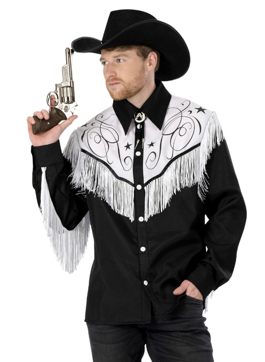 Trek je laarzen maar aan en zet je cowboyhoed stevig op, want met dit zwart-witte Show Cowboy Line Dance Blouse voel je je thuis in iedere saloon.