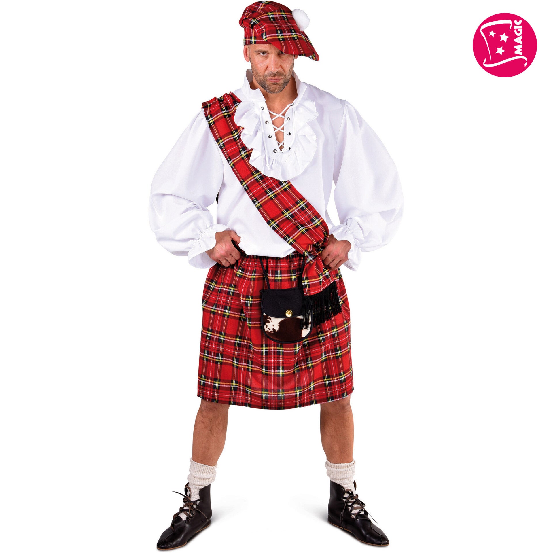 Schots kostuum bestaande uit een rok, baret, sjerp en tasje.