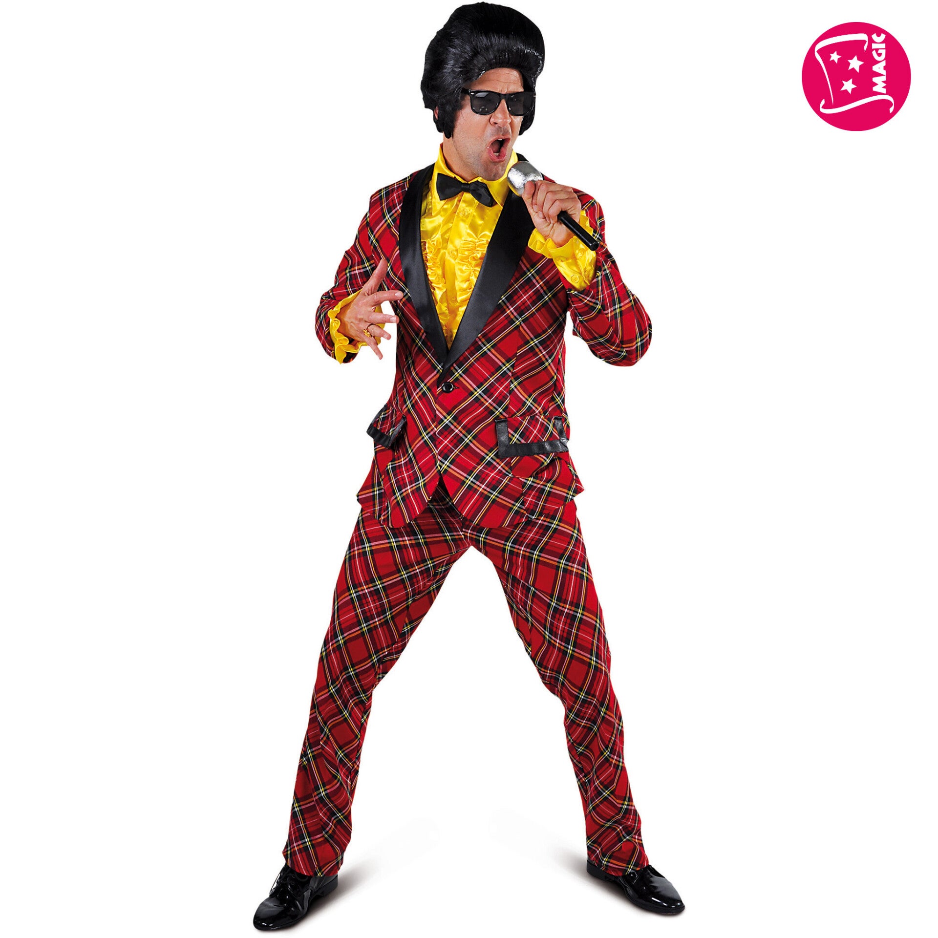 Deze opvallende outfit, met zijn levendige rode ruitpatroon, is perfect voor iedereen die graag in het middelpunt van de belangstelling staat.