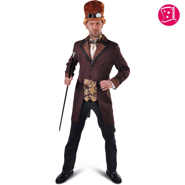 Steampunk Victoriaanse heerjas, pak bestaat uit een vest met sjabot en broek.