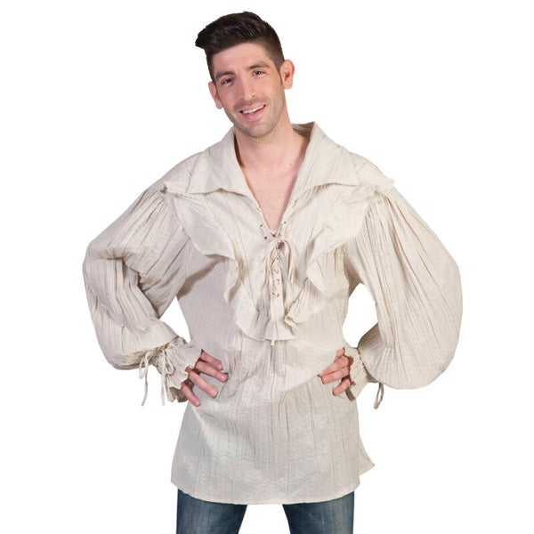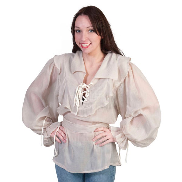 Stap in de tijd met deze stijlvolle beige historische blouse!