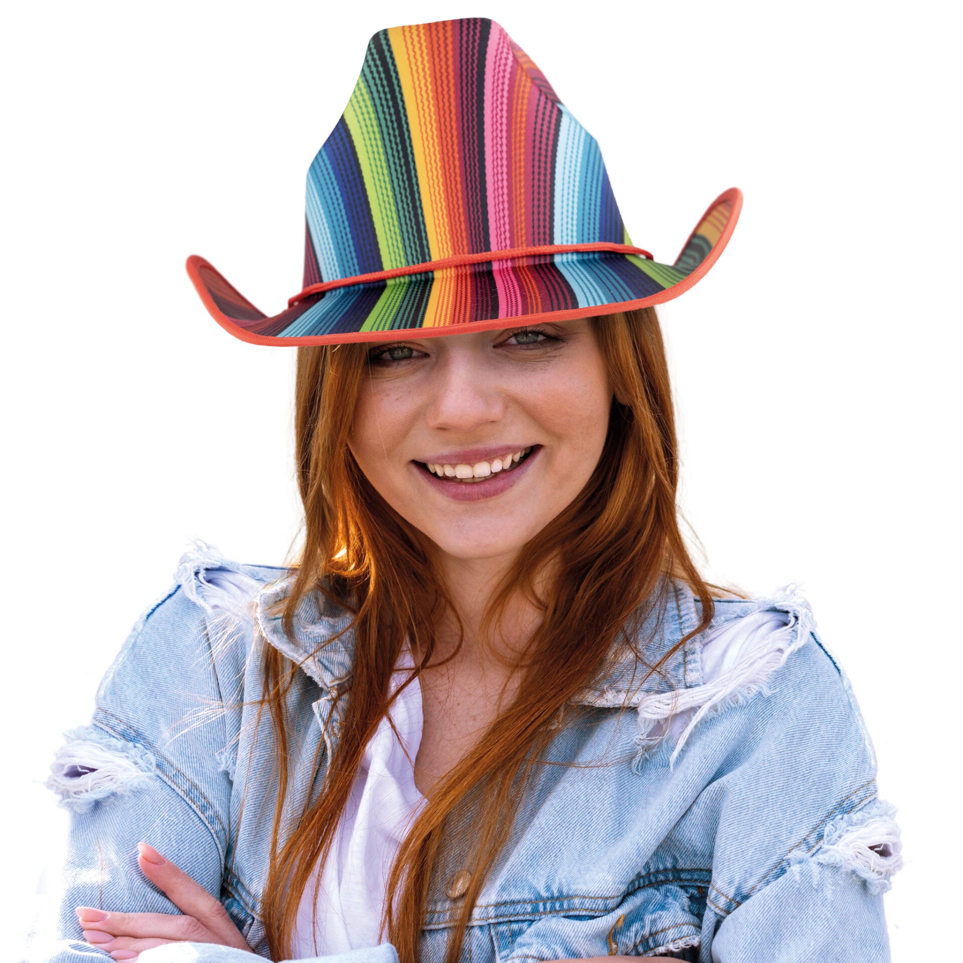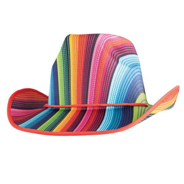 Stap in de spotlights met deze kleurrijke cowboyhoed in regenboogkleuren! Perfect voor elk feest of festival.