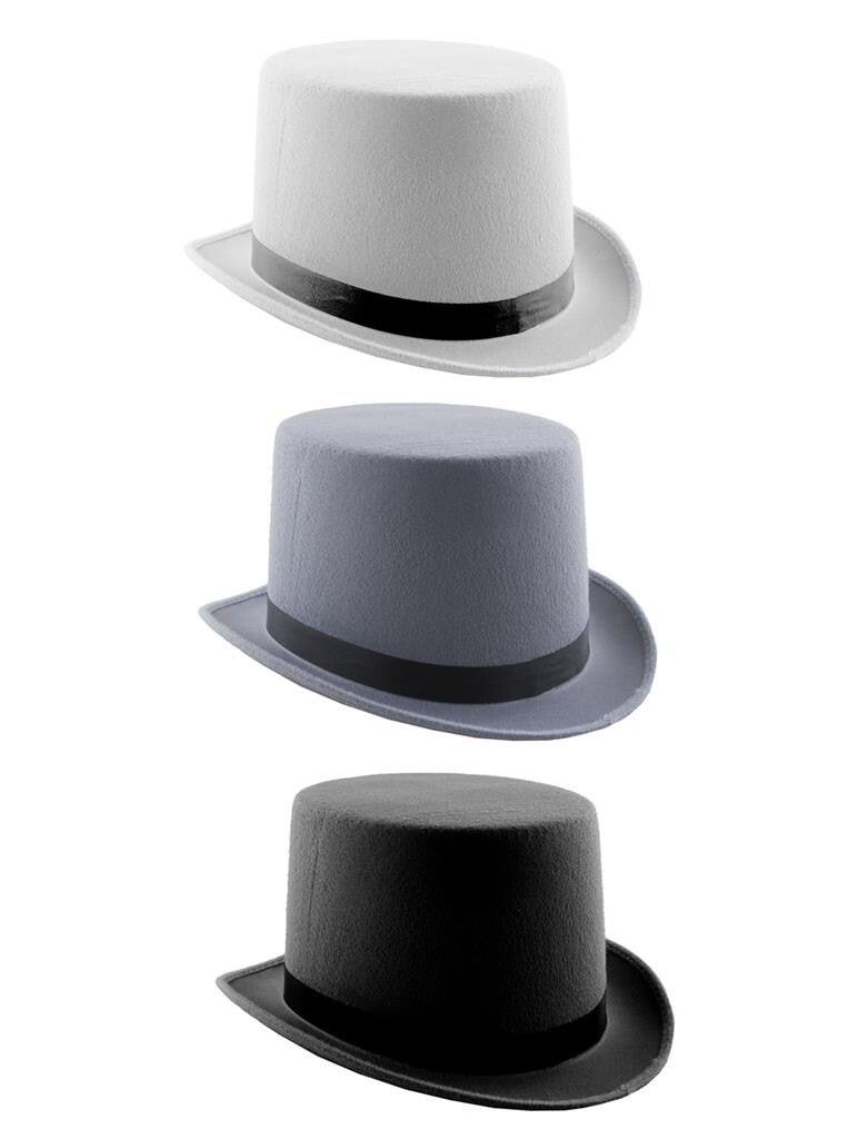 Steel de show met deze stijlvolle grijze hoge hoed met lint! Perfect voor elk feest en verkrijgbaar in twee maten.