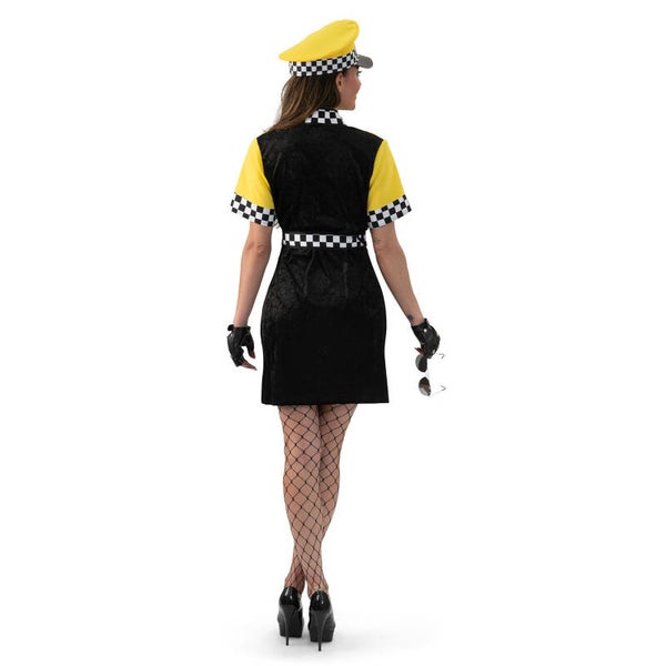 Stap in en rijd stijlvol het feest binnen met dit Taxi Tonnia Kostuum! Dit opvallende jurkje in felgeel met zwart-wit geblokte details is een echte blikvanger.
