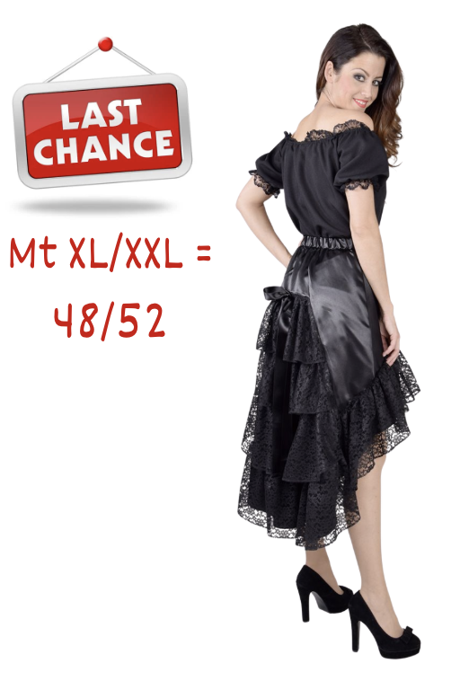Luxe satijn rok met kant zwart, Maat XL/XXL = 48/52*