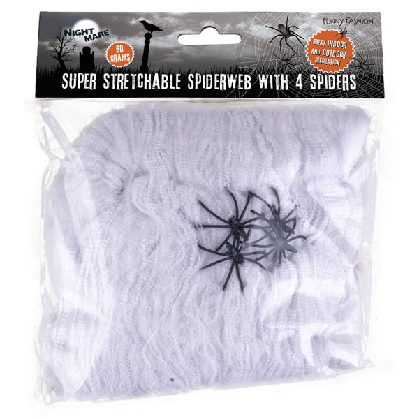 Spinnenweb 60 gr met 4 zwarte spinnen