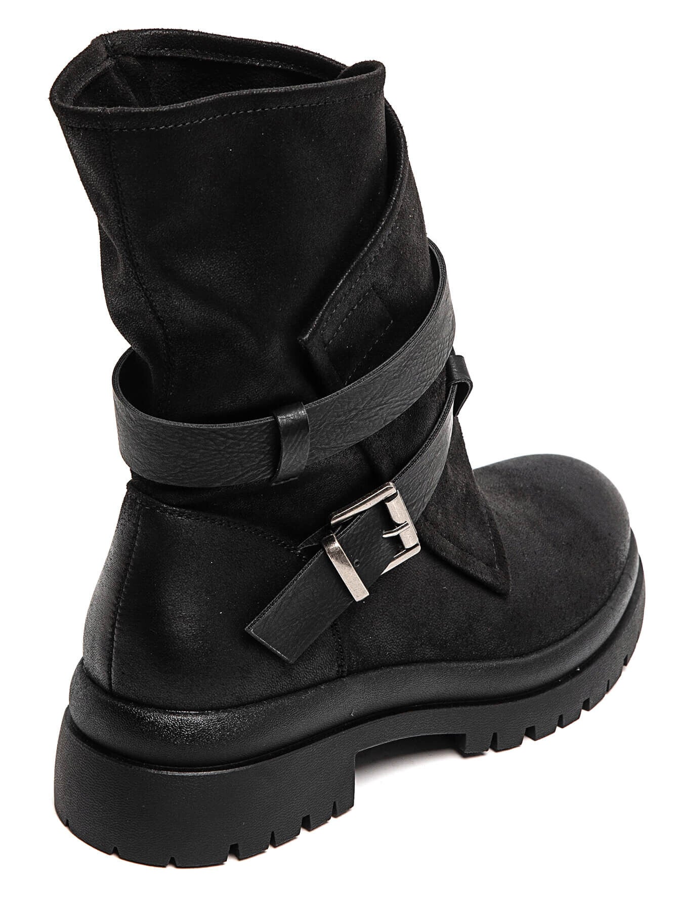 Deze dameslaarzen in bikerstijl combineren een zacht bovenwerk van imitatieleer met een stevig, stabiel platform.