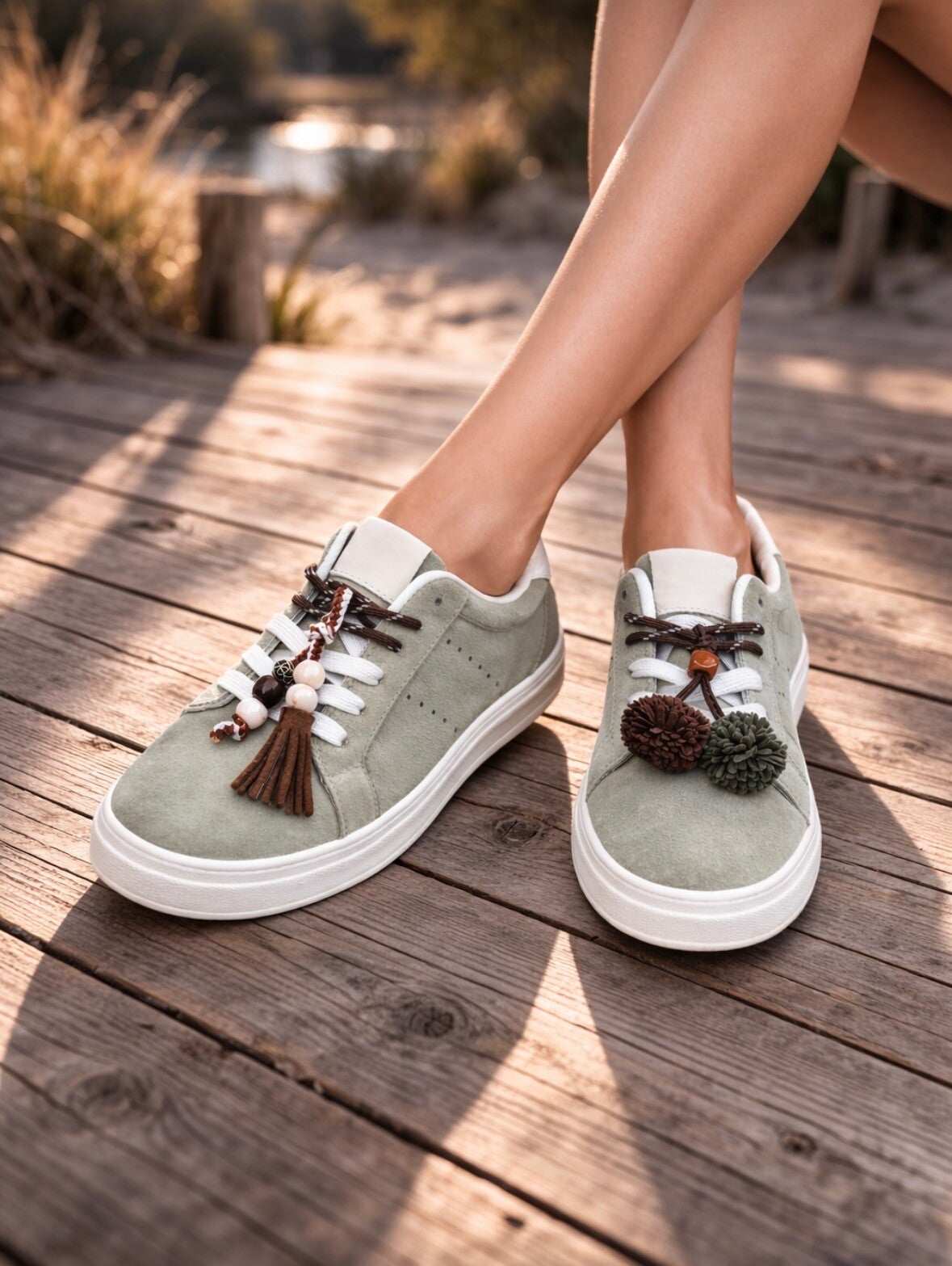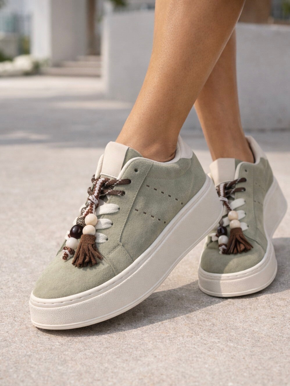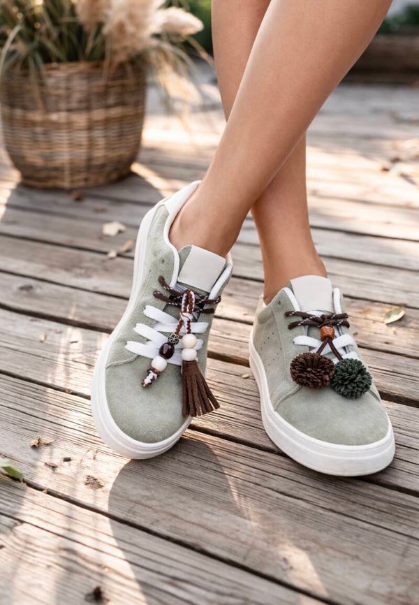 Summer green Suedine Sneakers met Flosjes